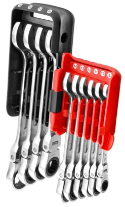 Facom 467BF.JP10 10 Piece Flexible Head Anti-Slip Ratchet Combination Spanner Set 8-19mm