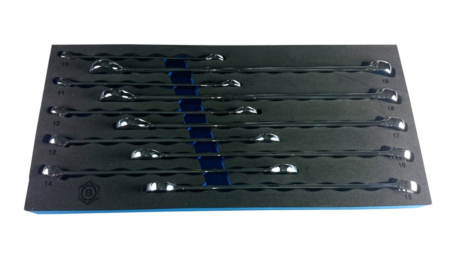 - Extra Long Spanners supplied in a Foam Tool Box Insert Tray marked with the sizes.