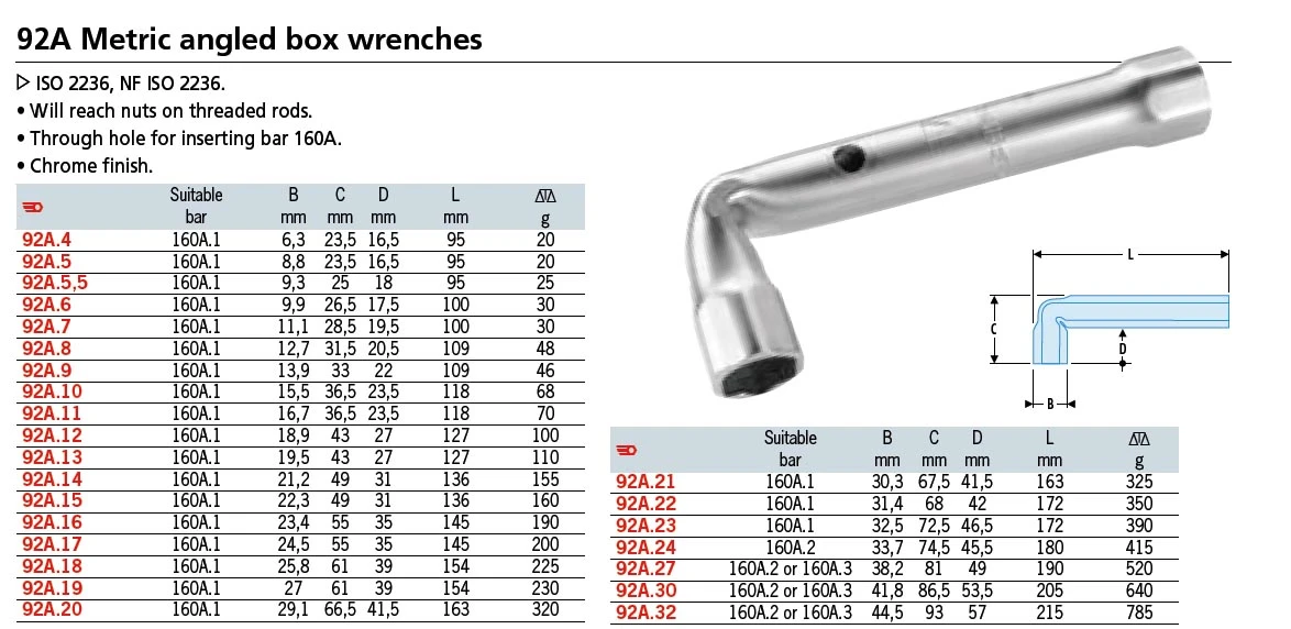 Facom 39.JU14T Short Imperial Combination Spanner Wrench Set 1/8-11/16 AF