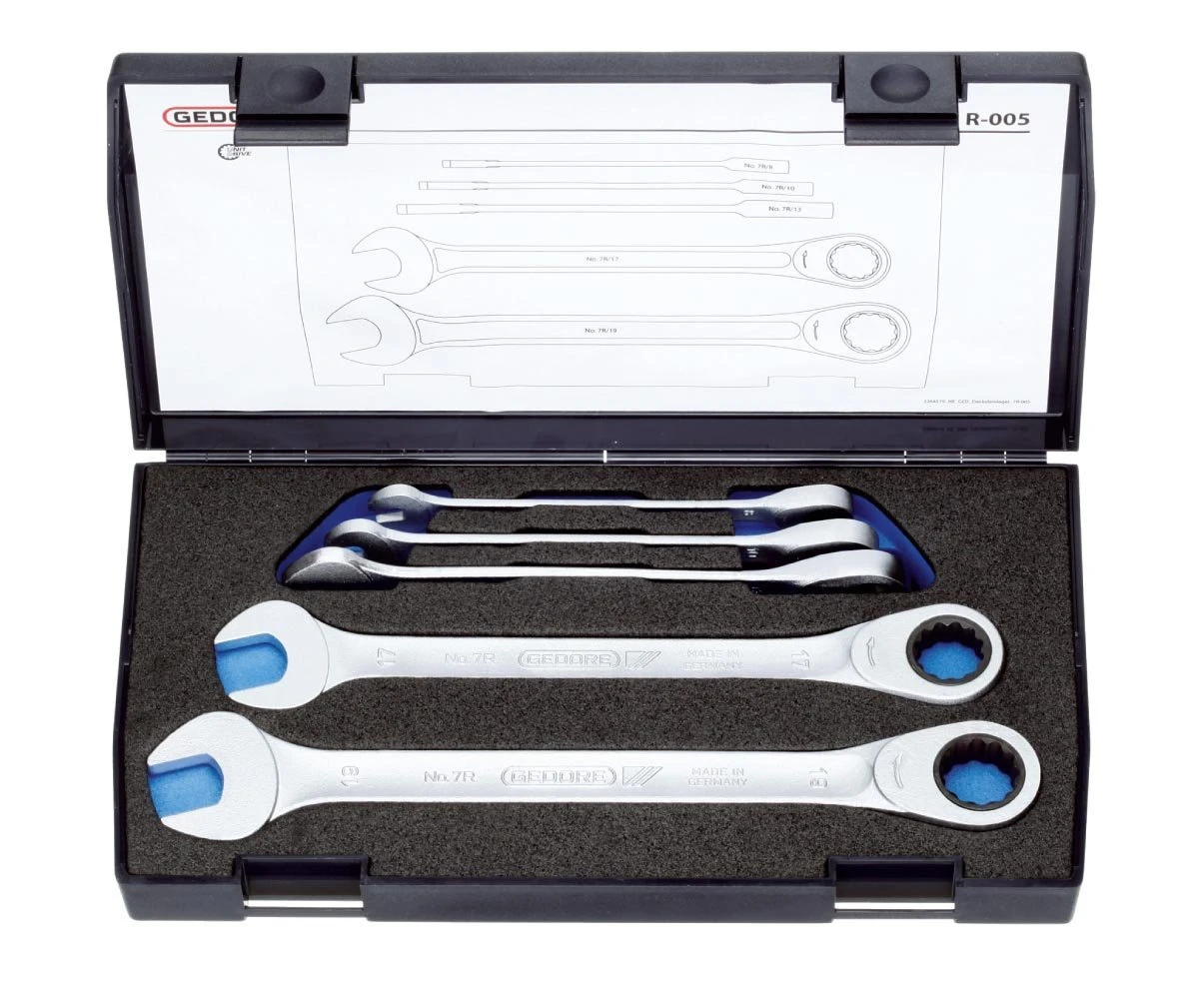 - Sizes included in this Gedore set are 8mm, 10mm, 13mm, 17mm and 19mm.