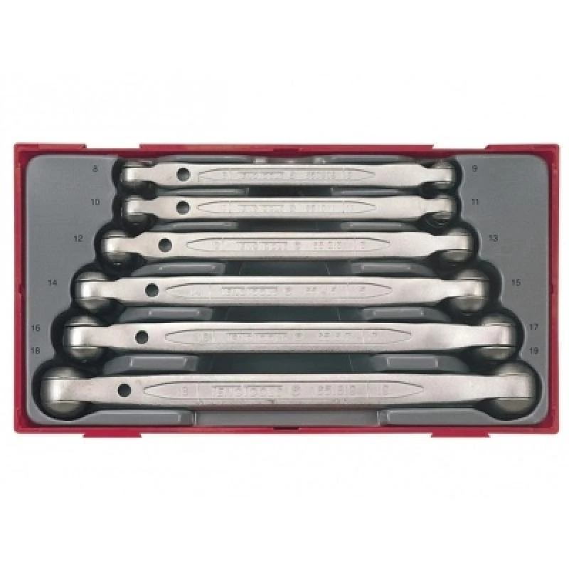 - Teng Tools 6 piece double flex wrench set, with different size 12 point sockets at each end.