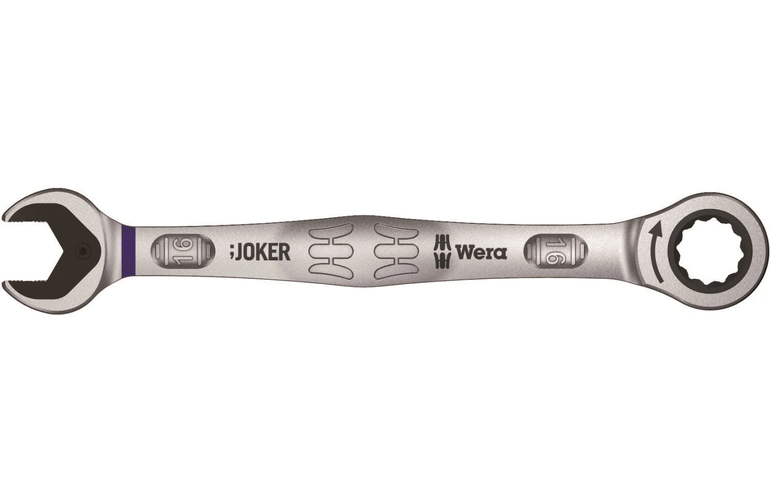 The Wera Joker Ratcheting Open End Combination Spanner does everything a wrench has to do, and a whole lot more. Wera have incorporated a hardened metal gripping stop plate on the head of the Joker which serves a number of purposes. Firstly it carries out a holding function to ensure that nuts and bolts are held in the jaw and can be easily positioned where they are needed, bringing an end to dropped nuts or bolts. The fastening of the nut or bolt can then be carried out quickly and safely thanks to the stop-plate that holds the fastener in place.
